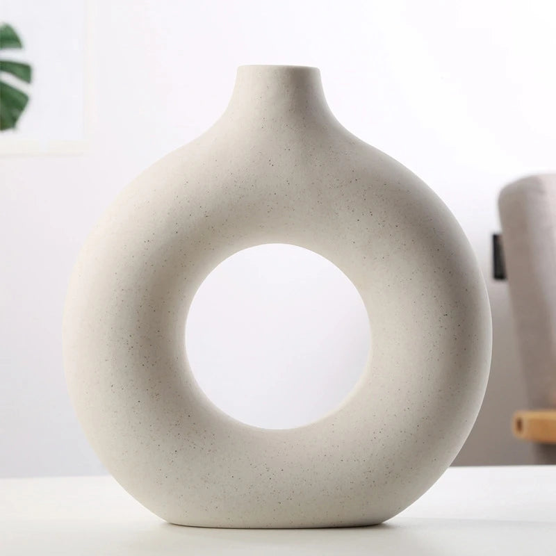 Nordic Modern Ceramic Donut Vase Matt Creative Circular Design for Living Room Handcrafted Flower Irregular Decorative Bottle